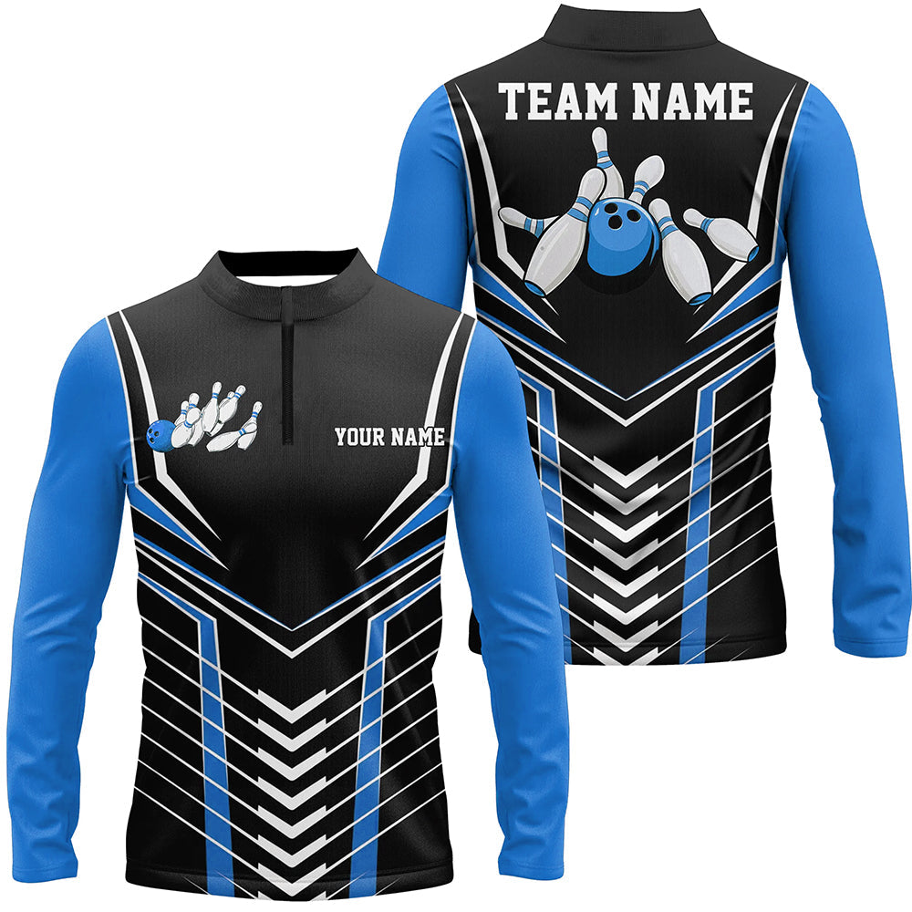 Black And Blue Custom Bowling Jerseys Bowling Team Shirt For Men, Bowling Uniform With Name IPHW7911