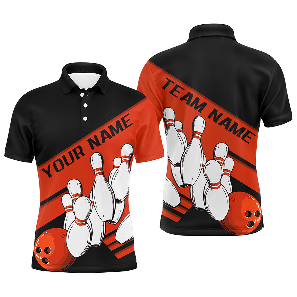 Black And Orange Custom Bowling Shirts For Men, Bowling League Shirt Bowling Team Uniform IPHW7920