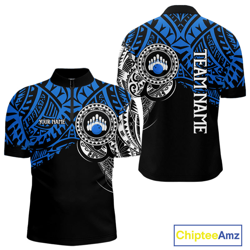 Personalized Black and Blue Tribal pattern Mens Bowling Shirts Custom Team Bowling outfit for men NQS10762