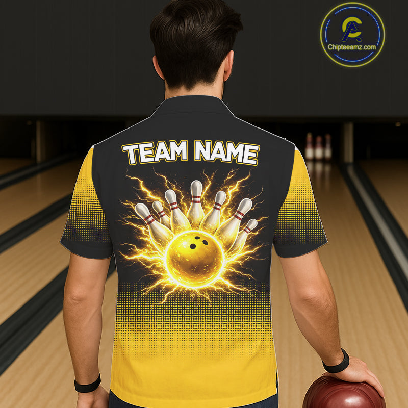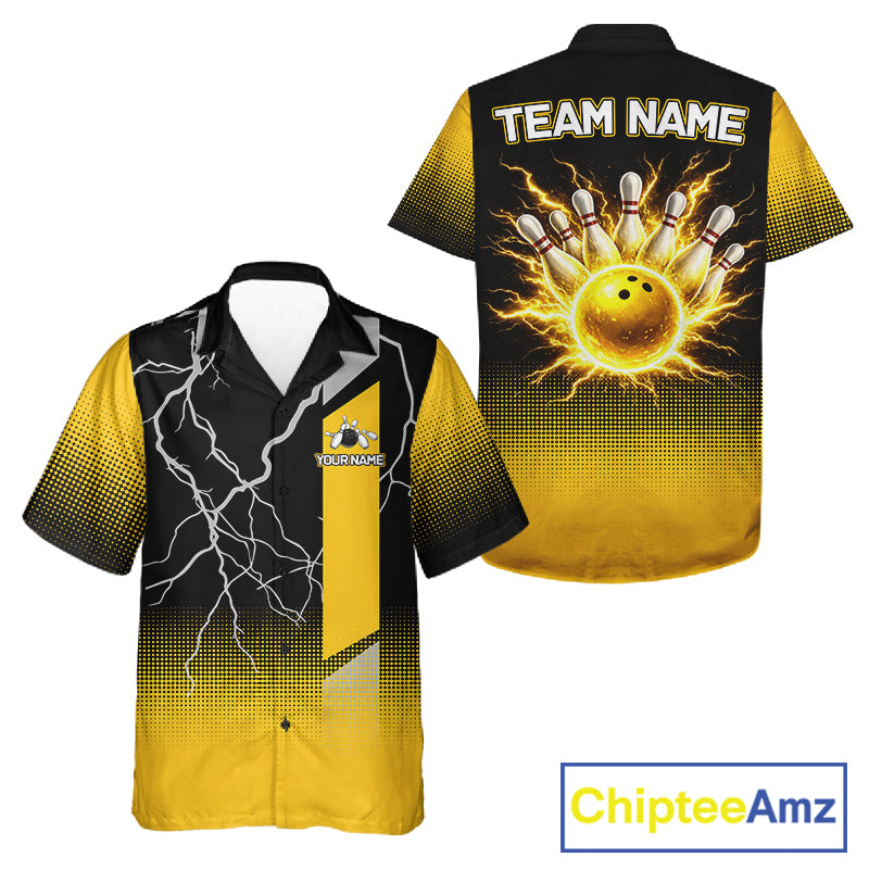 Personalized black & yellow bowling button-up shirt lightning thunder custom bowling hawaiian shirt NQS11377