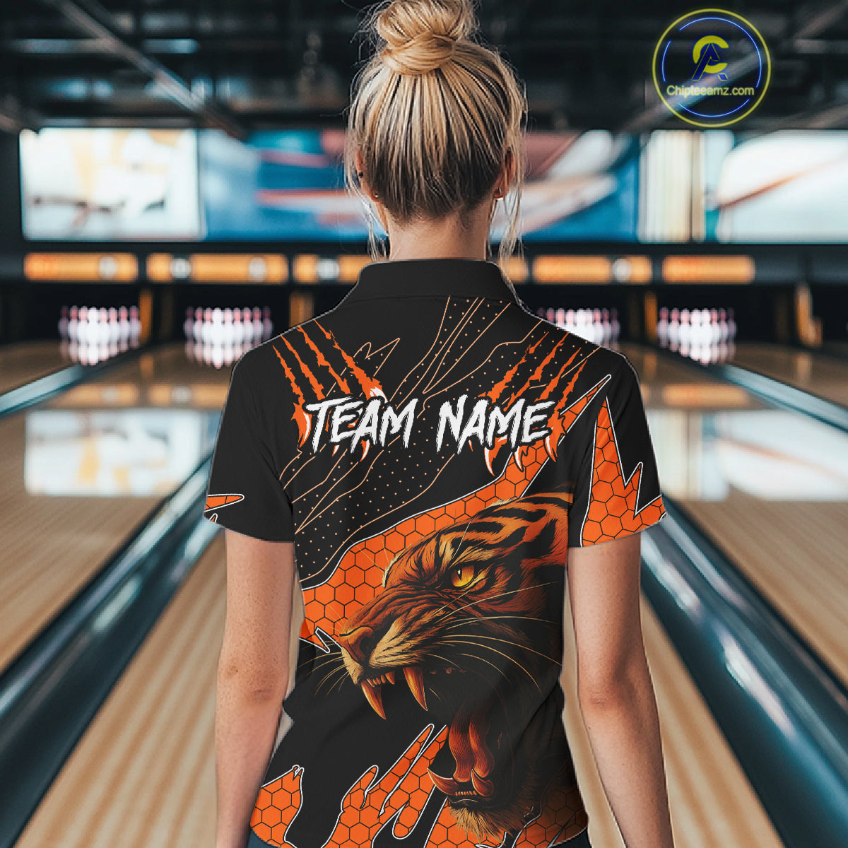 Personalized Tiger Bowling Team Women Polo, Quarter Zip Shirt, Black And Orange Tiger Bowling Jerseys NQS10398
