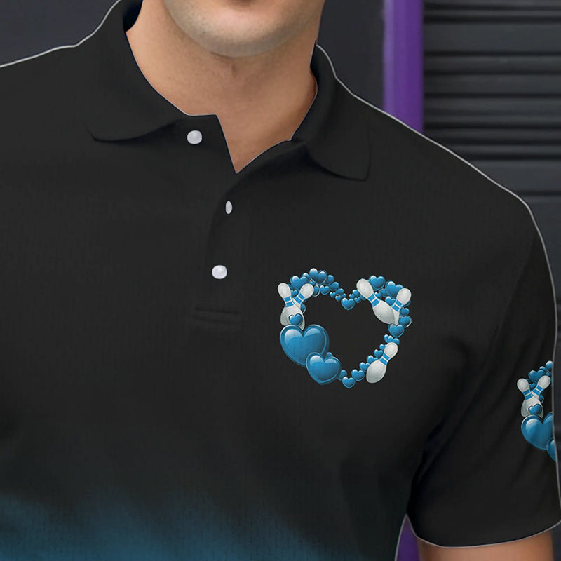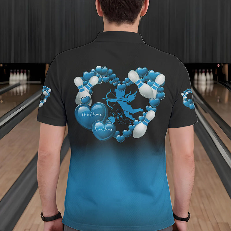 Black And Blue Custom Valentines Day Bowling Polo Shirts For Men, Bowling Couple Shirt IPHW8335