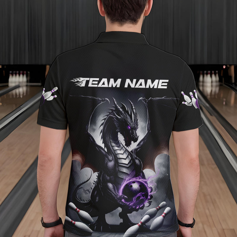 Custom Black And Purple Dragon Bowling Team Polo Shirts For Men, Dragon Bowling Jerseys IPHW8546