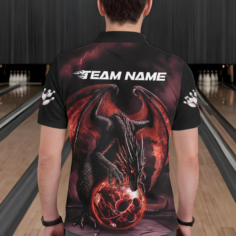 Black And Orange Custom Bowling Team Polo Shirts For Men, Dragon Bowling League Shirts IPHW8692
