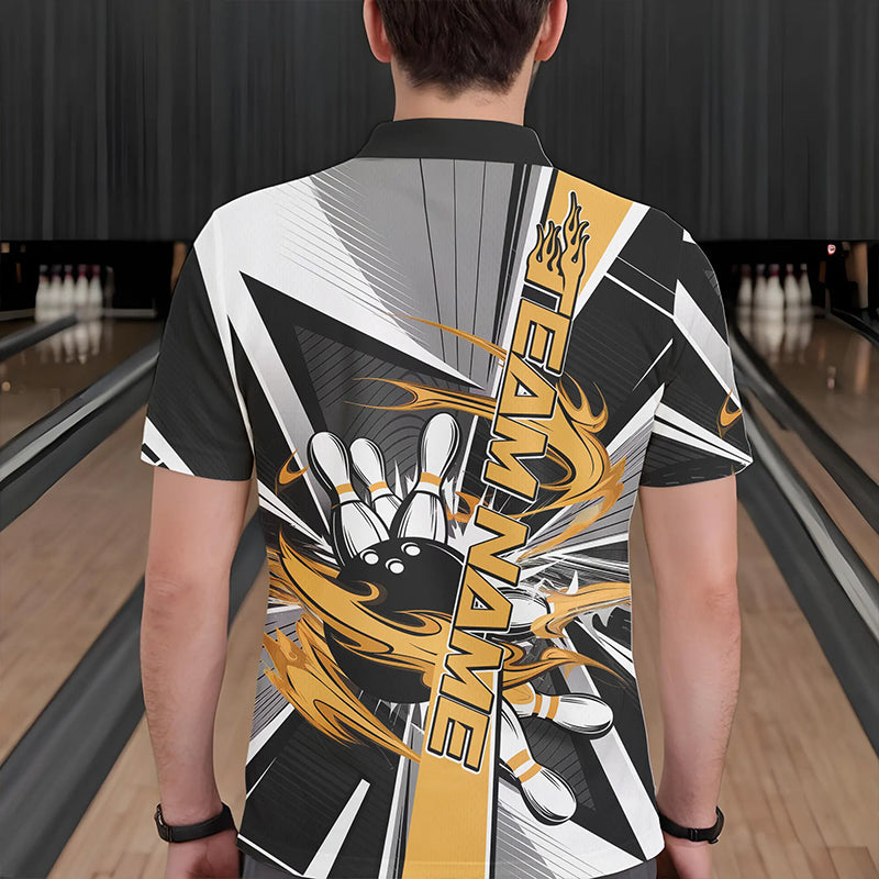 Custom Black And Yellow Strike Bowling Men Polo Shirts, Bowling Team League Shirt With Name IPHW8759