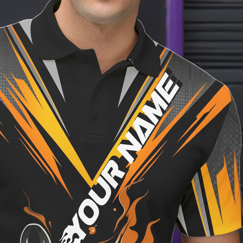 Custom Black And Yellow Flame Bowling Men Polo Shirts, Fire Bowling Tournament Team Outfits IPHW8774