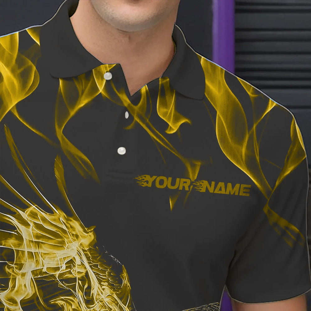 Custom Black And Yellow Flame Eagle Bowling Team Men Polo Shirts, Eagle Bowling League Shirt IPHW8793