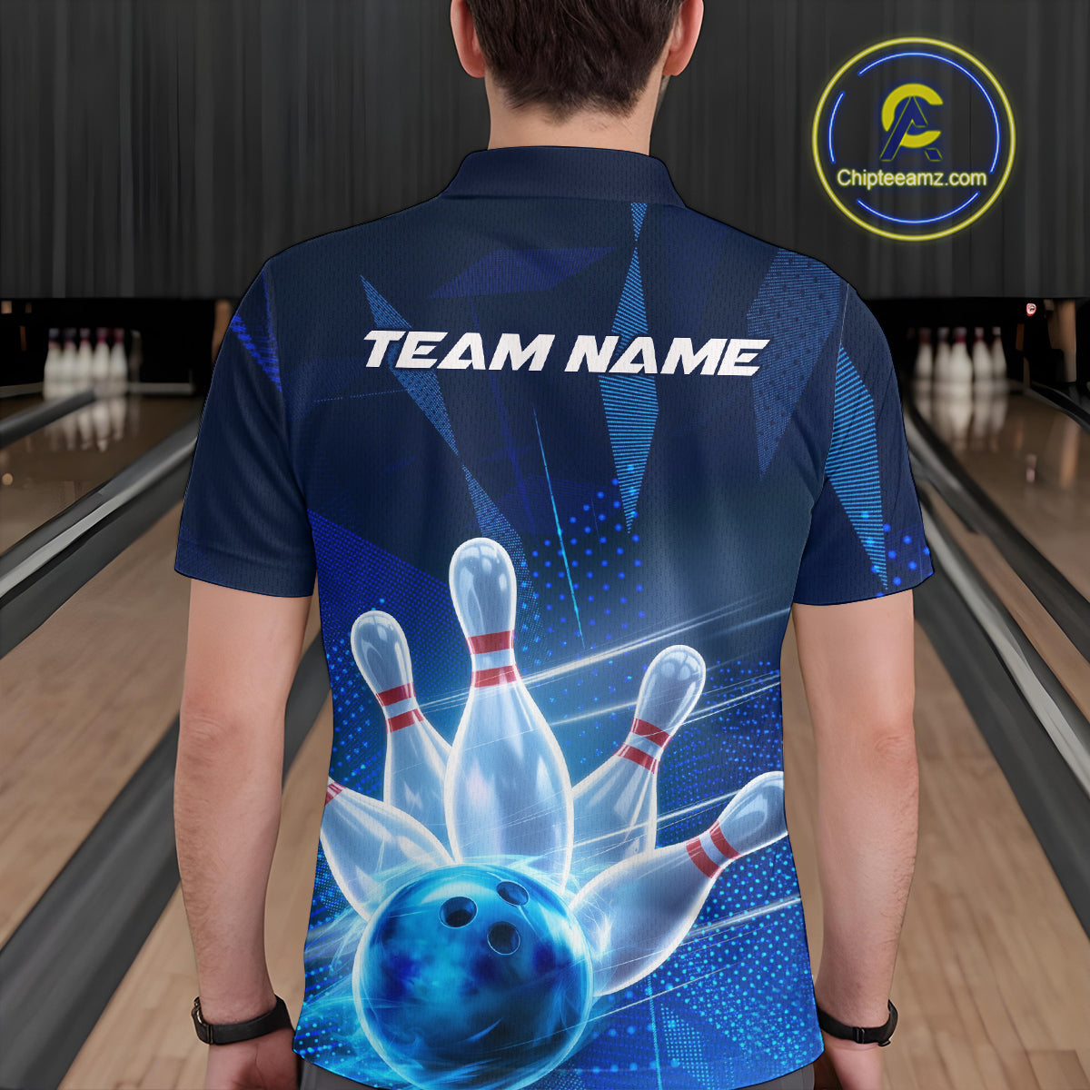 Custom Black And Blue Bowling Jerseys, Men Bowling Polo Shirt Team Uniform IPHW9390