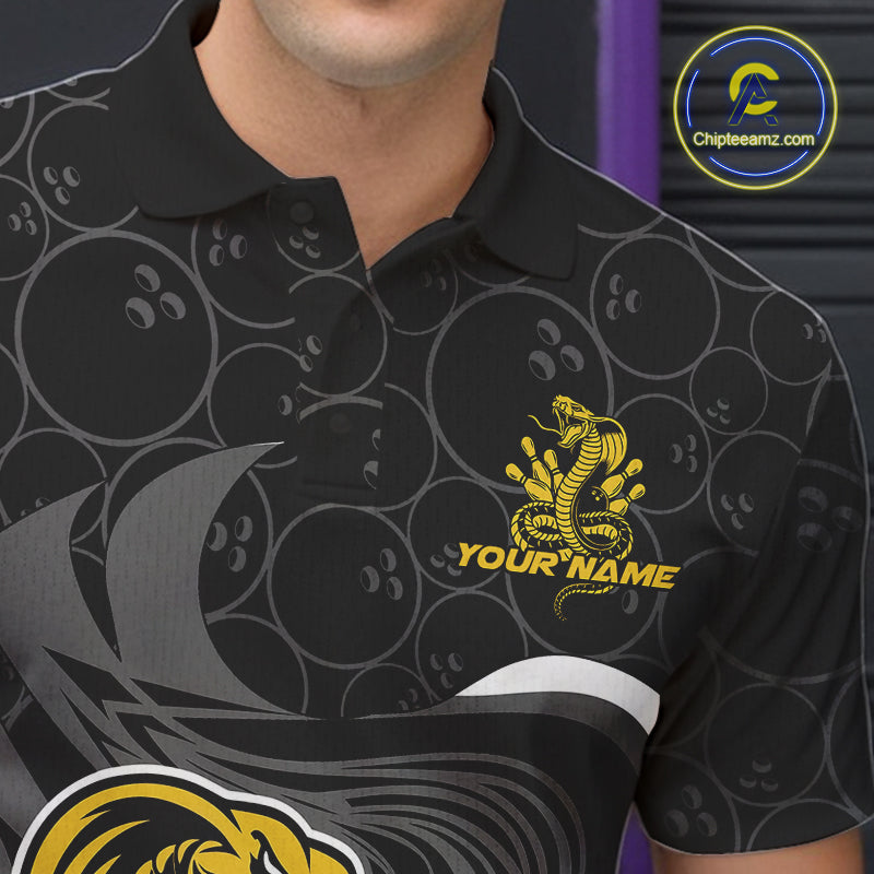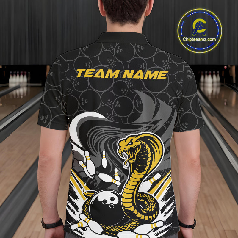 Custom Black And Yellow Cobra Snake Bowling Polo Shirts For Men, Cobra Bowling Team Shirt IPHW9699