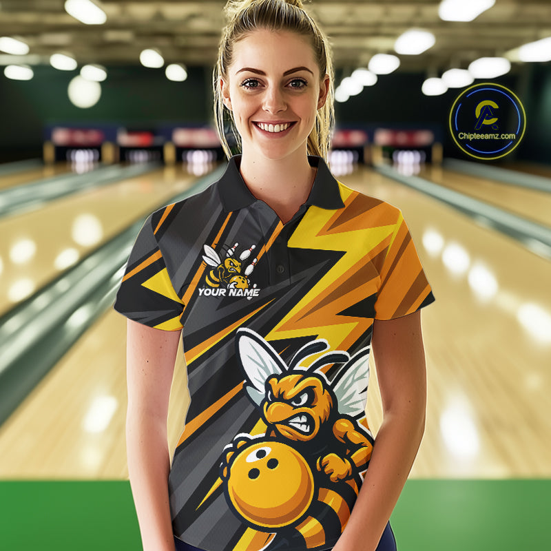 Custom Black And Yellow Bee Bowling Polo Shirts For Women, Bowling Team Uniform IPHW9046
