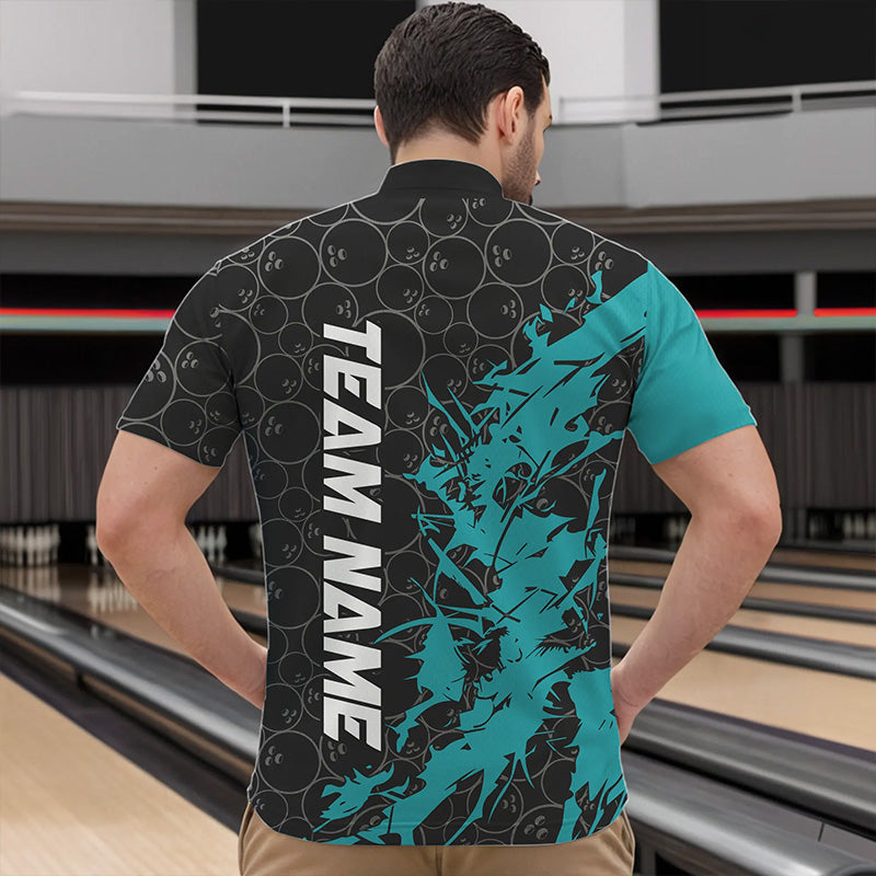 Black And Blue Custom Bowling Tournament Quarter-Zip Shirts For Men, Bowling Pattern Team Jerseys IPHW8420