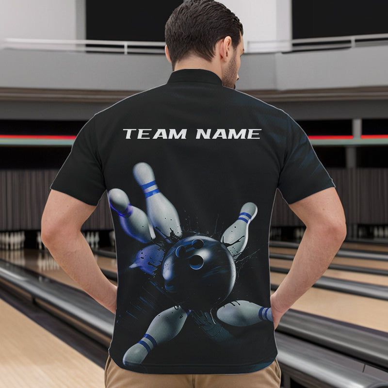 Custom Black And Blue Bowling Jerseys, Bowling League Quarter-Zip Shirts For Men Team Uniform IPHW8562