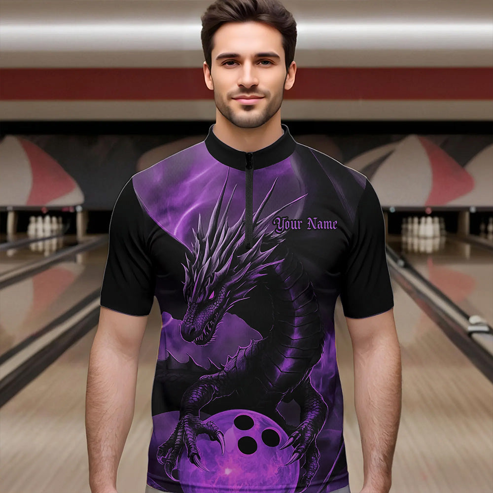 Black And Purple Custom Dragon Bowling Quarter-Zip Shirts For Men, Dragon Bowling League Shirt IPHW8643