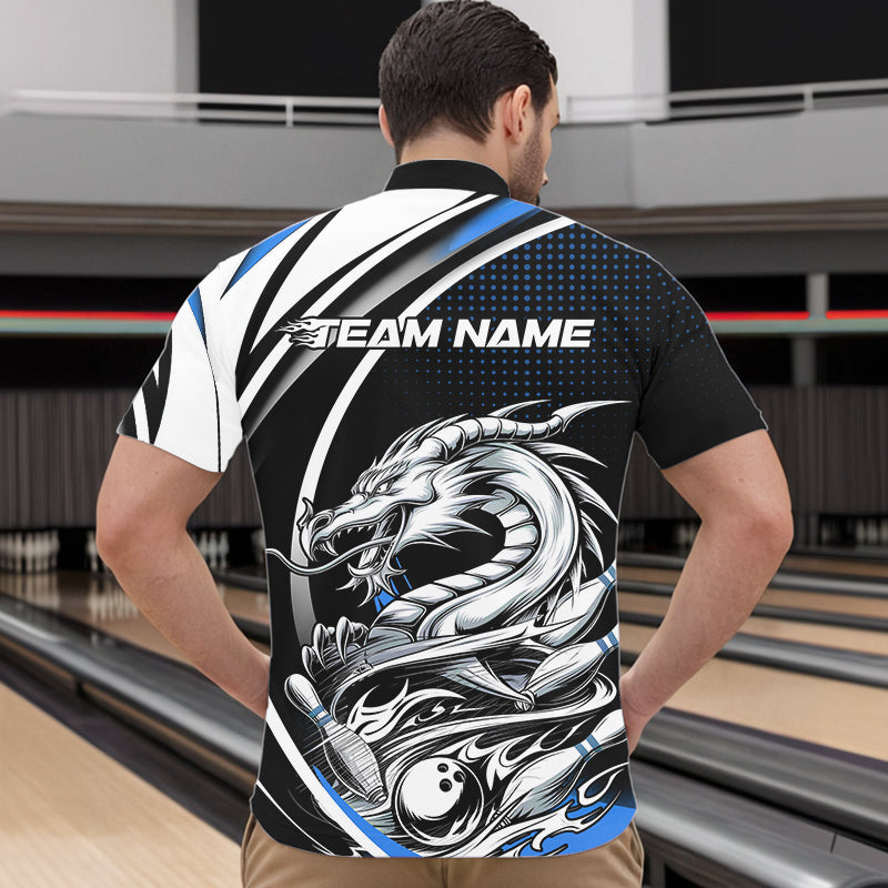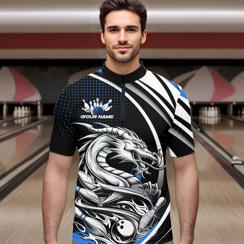 Custom Black And Blue Dragon Bowling Team Quarter-Zip Shirts For Men, Dragon Bowling Jerseys IPHW8706