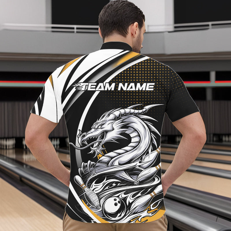 Custom Black And Yellow Dragon Bowling Team Quarter-Zip Shirts For Men, Dragon Bowling Jerseys IPHW8707