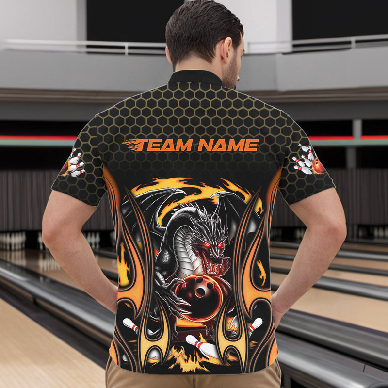 Custom Black And Yellow Flame Dragon Bowling Men Quarter-Zip Shirts, Team Bowling League Shirt IPHW8839