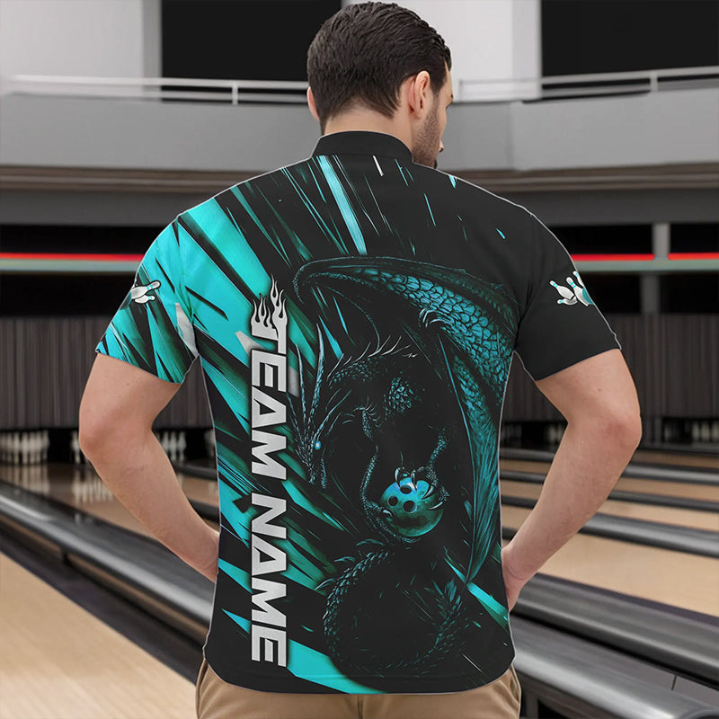 Black And Blue Custom Dragon Bowling Team Quarter-Zip Shirts For Men, Bowling League Shirt IPHW8968