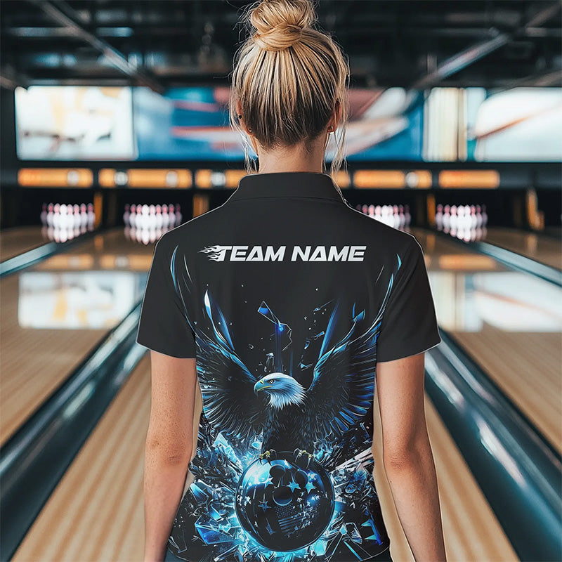 Black And Blue Eagle Break Glass Custom Bowling Quarter-Zip Shirts For Women Team Shirt IPHW8396