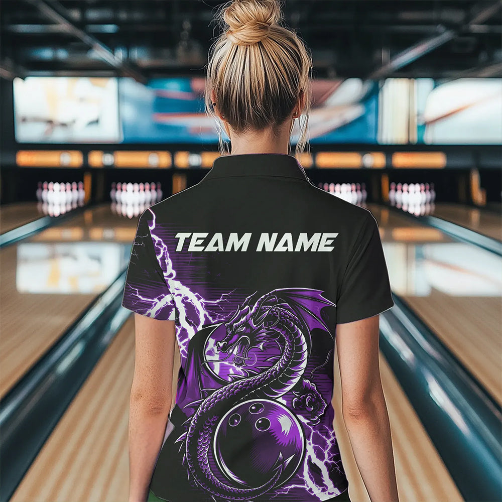 Custom Black And Purple Thunder Lightning Dragon Bowling Womens Quarter-Zip Shirts IPHW8664
