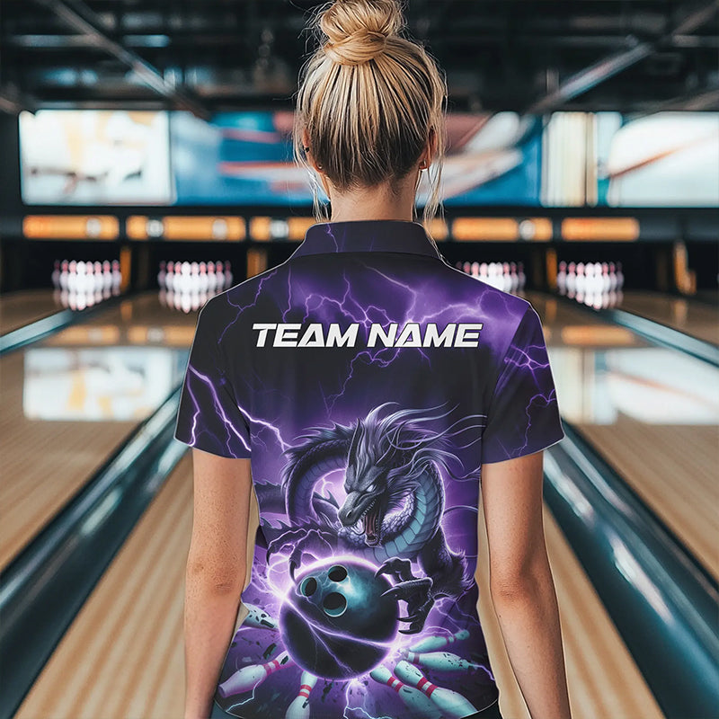 Custom Black And Purple Thunder Lightning Dragon Womens Bowling Quarter-Zip Shirts IPHW8679