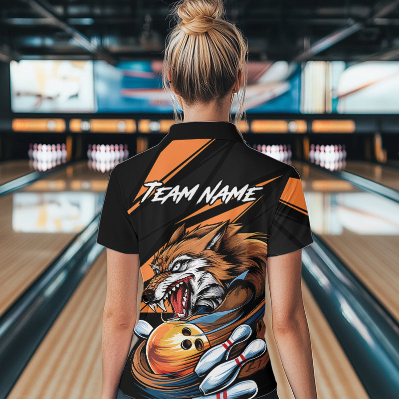 Custom Black And Orange Wolf Bowling Team Quarter-Zip Shirt For Women, Wolf Bowling Jerseys IPHW8713
