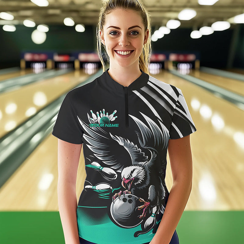 Custom Black And Blue Eagle Bowling Jerseys, Bowling Team Women Quarter-Zip Shirts IPHW8887
