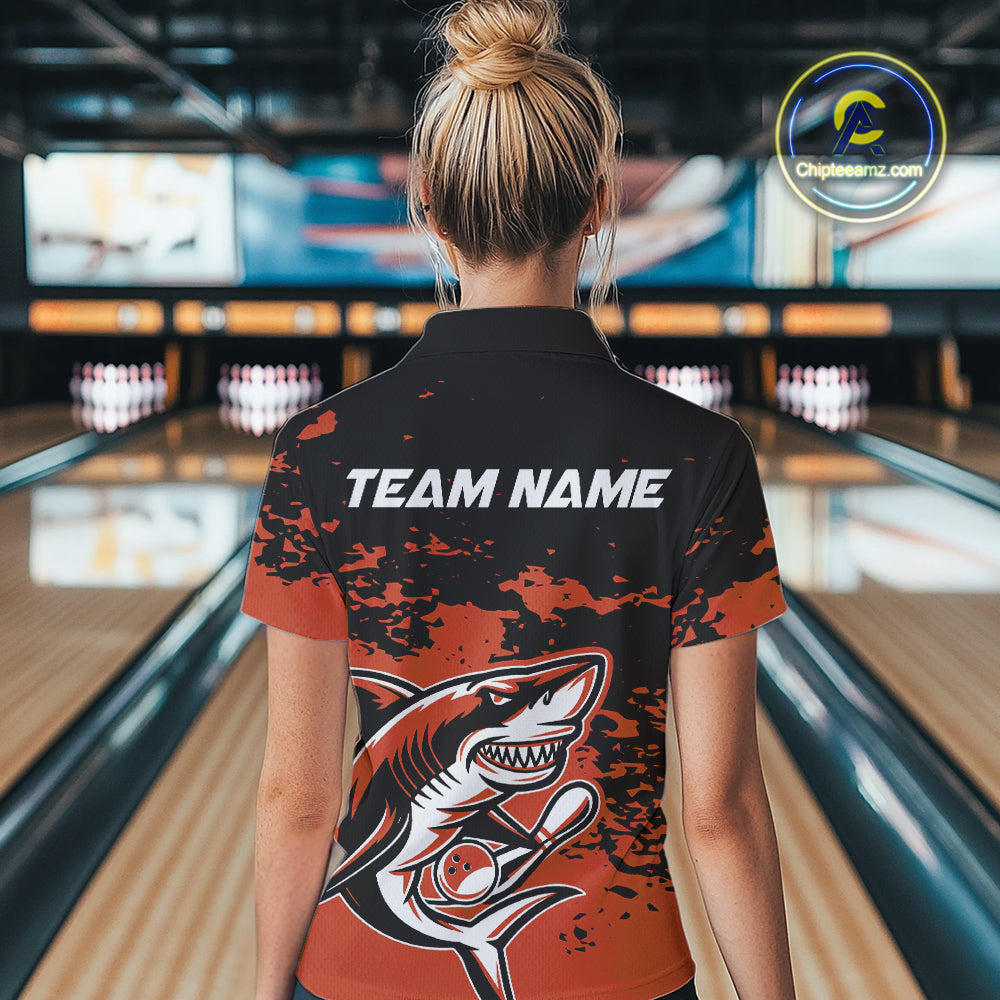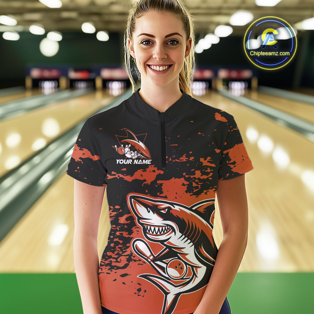 Custom Black And Ornage Camo Shark Bowling Women Quarter-Zip Shirt, Tournament Shirt IPHW8998