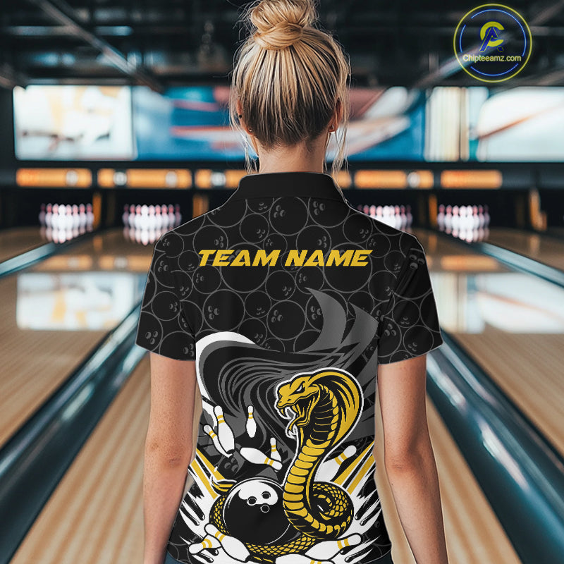 Custom Black And Yellow Cobra Snake Bowling Women Quarter-Zip Shirts, Bowling Team Shirt IPHW9699