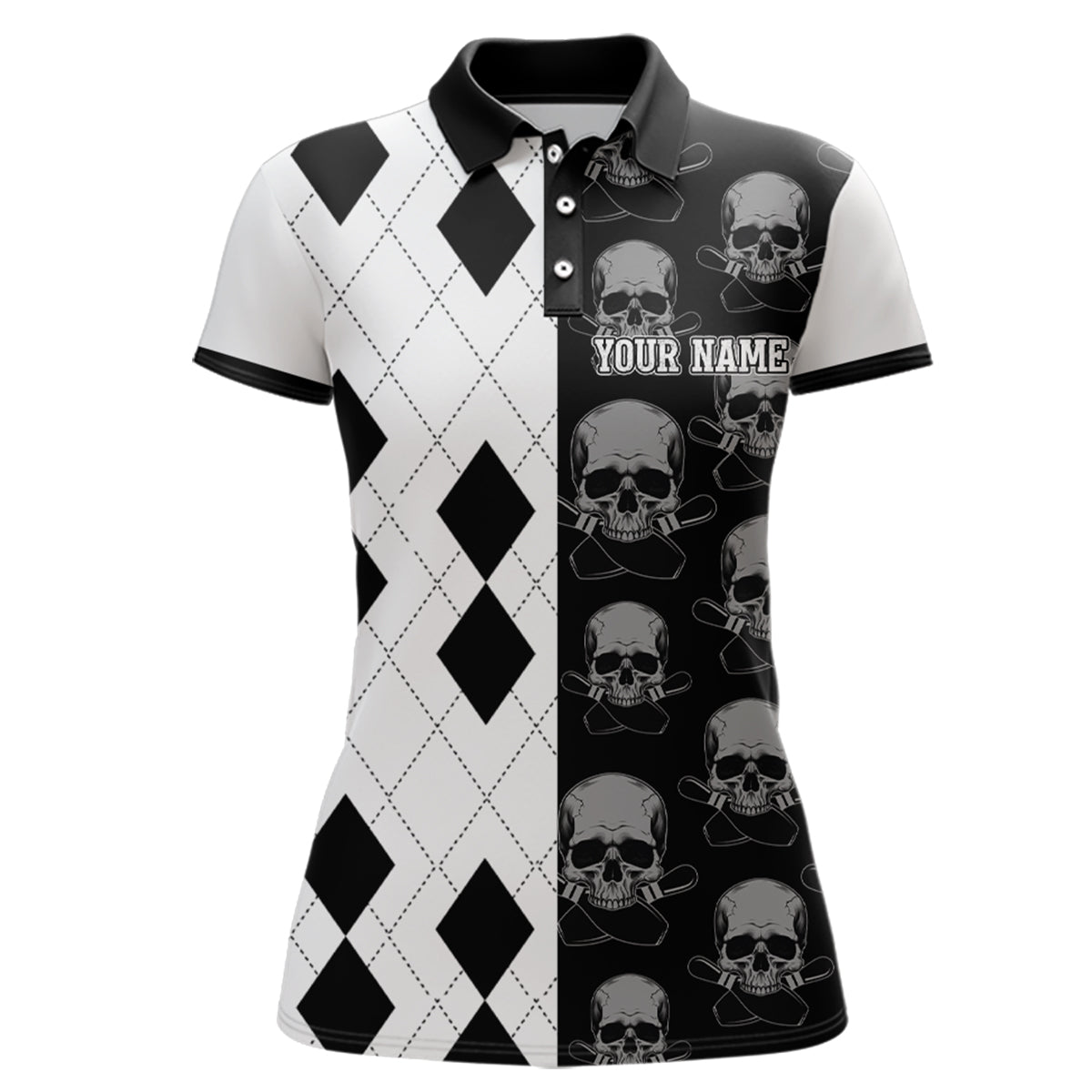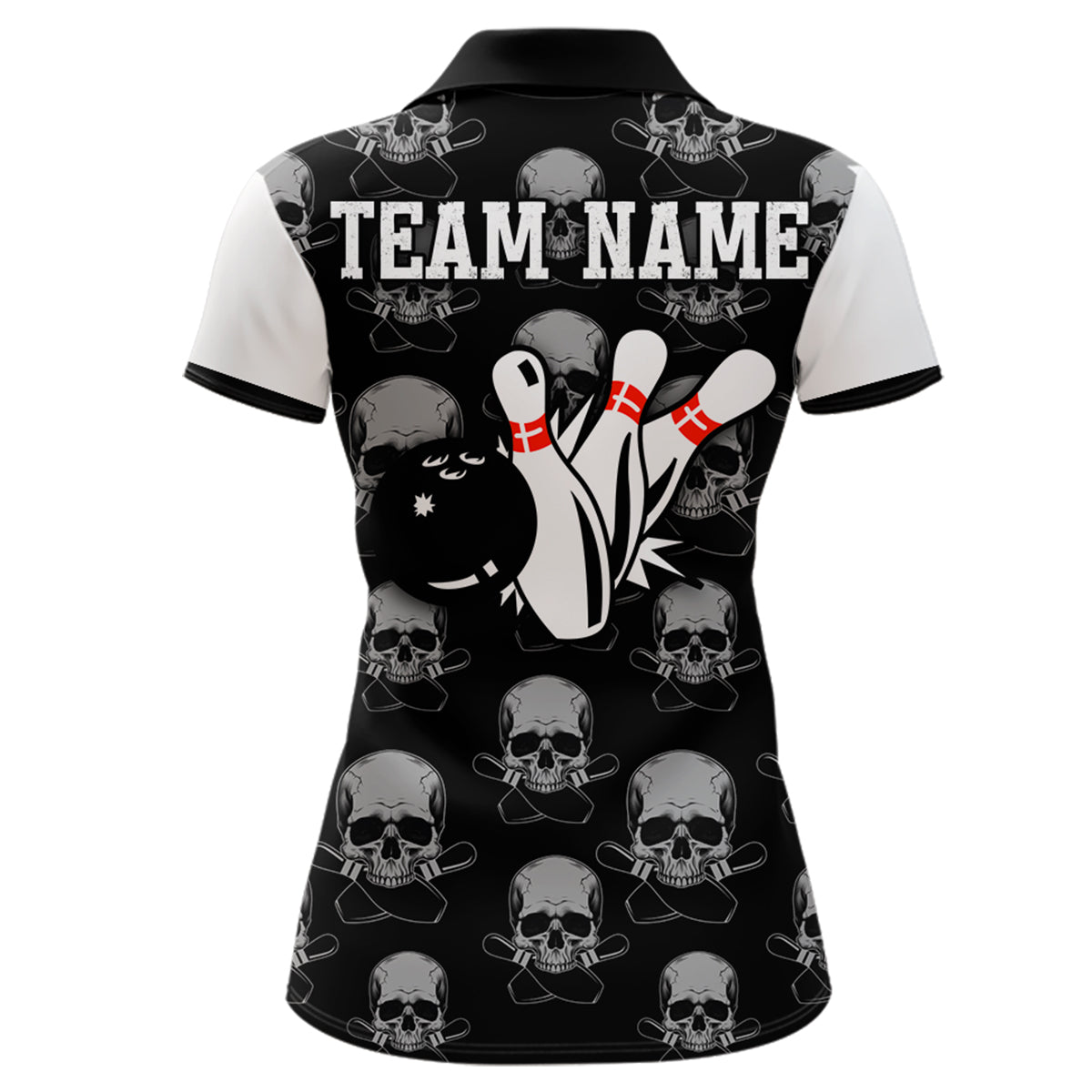Skull Bowling Jersey Team League Custom Black Bowling Shirt Women Bowling Polo Shirt BDT347