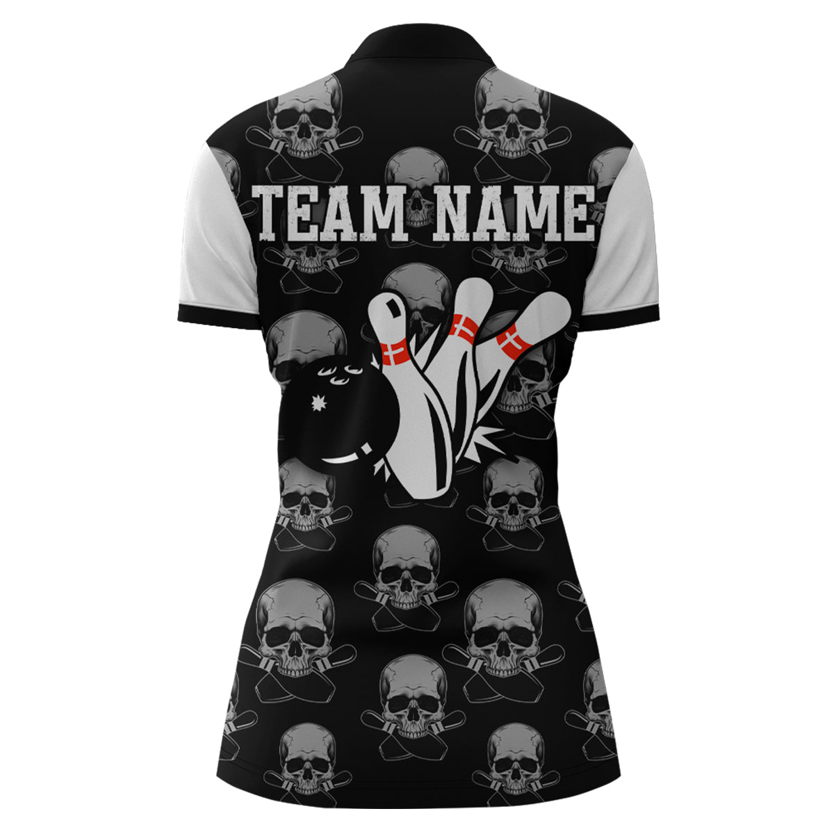 Skull Bowling Jersey Team League Custom Black Bowling Shirt Women Bowling Quarter-Zip Shirt BDT347