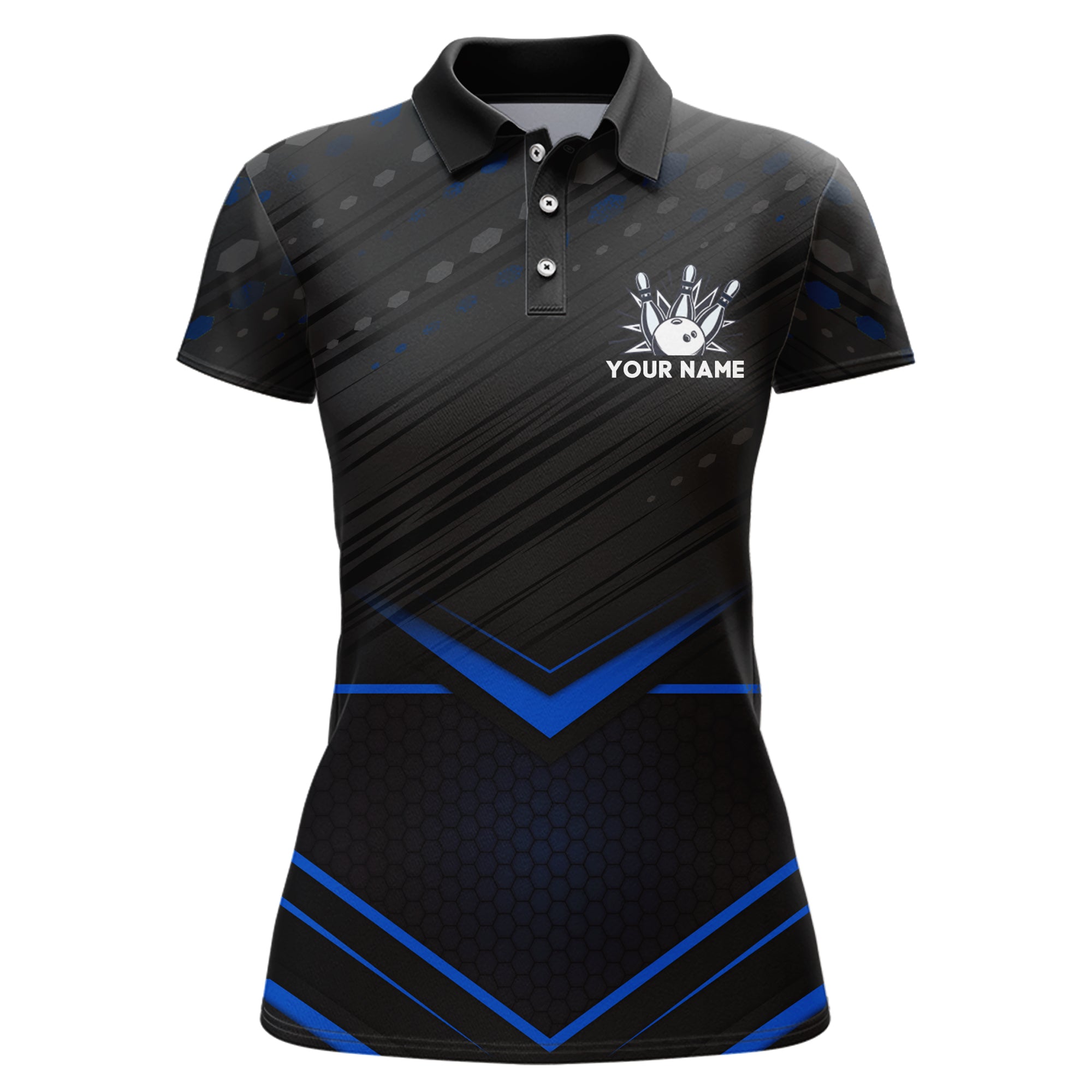 Strike Bowling Shirt for Women Personalized Bowling Jersey Blue&Black Bowling Polo Shirt BDT259