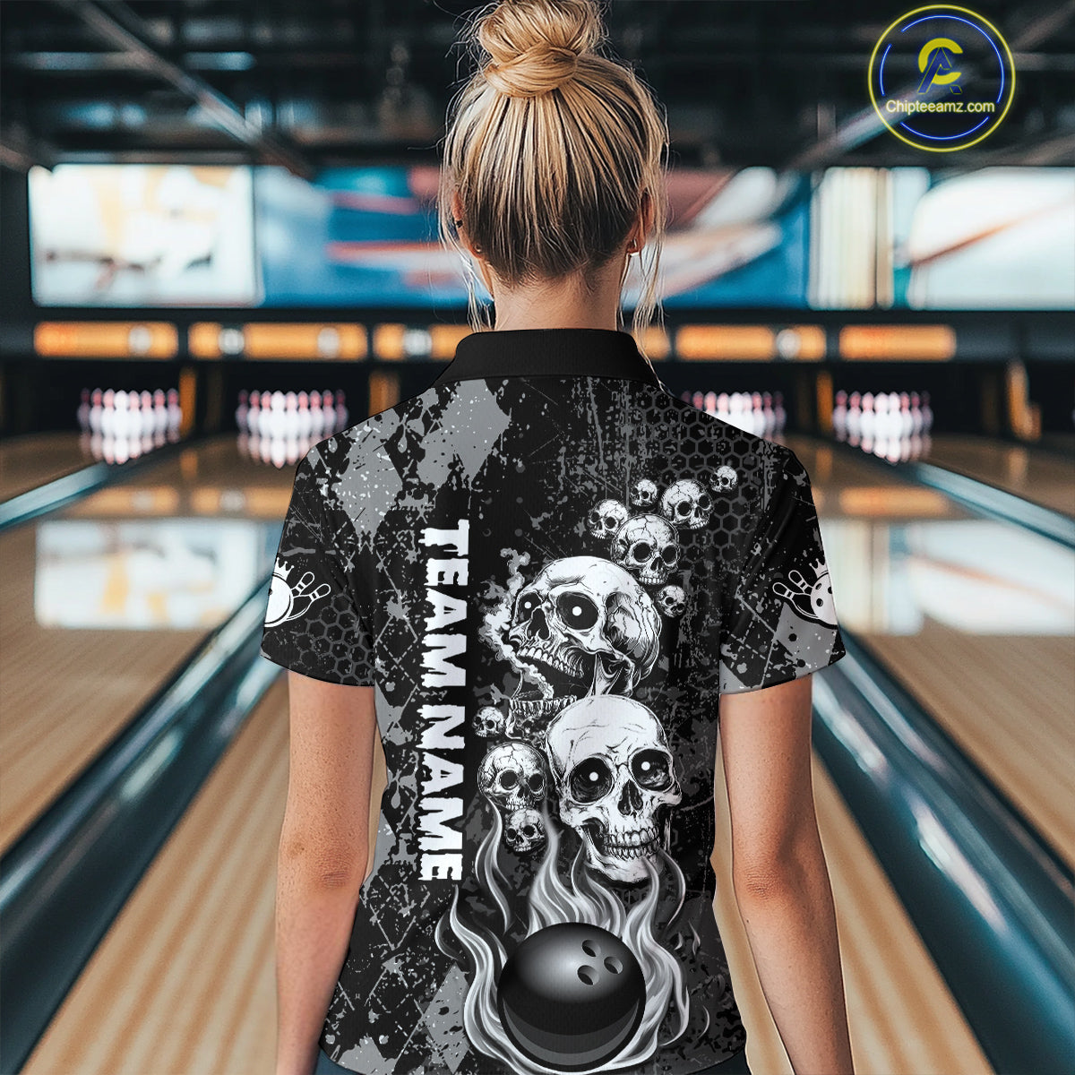 Black Grey Grunge Argyle Skull Bowling Shirt For Women Custom Bowling Team Jersey Polo & 1/4 Zip TDM4773
