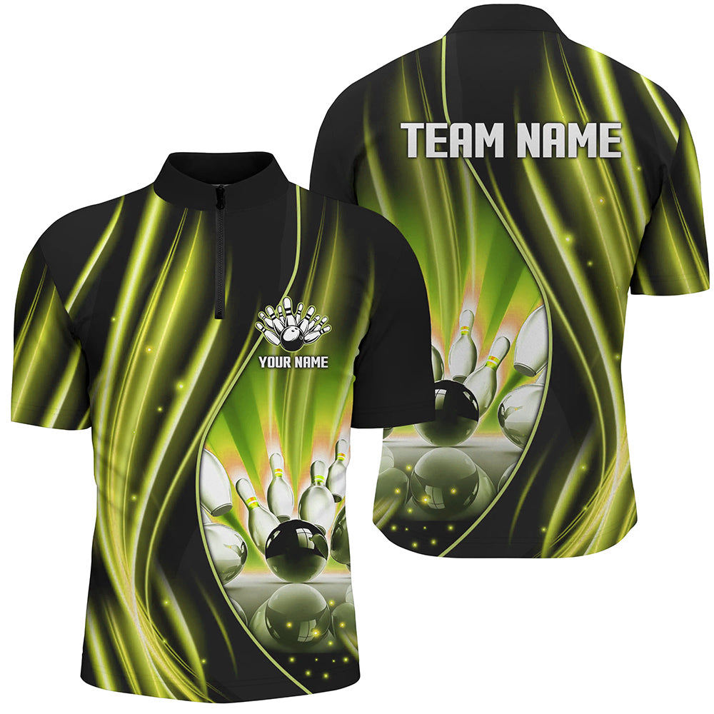 Yellow and black light Men Polo, 1/4 Quarter Zip Shirts Custom bowling team jerseys, gift for bowlers NQS8098