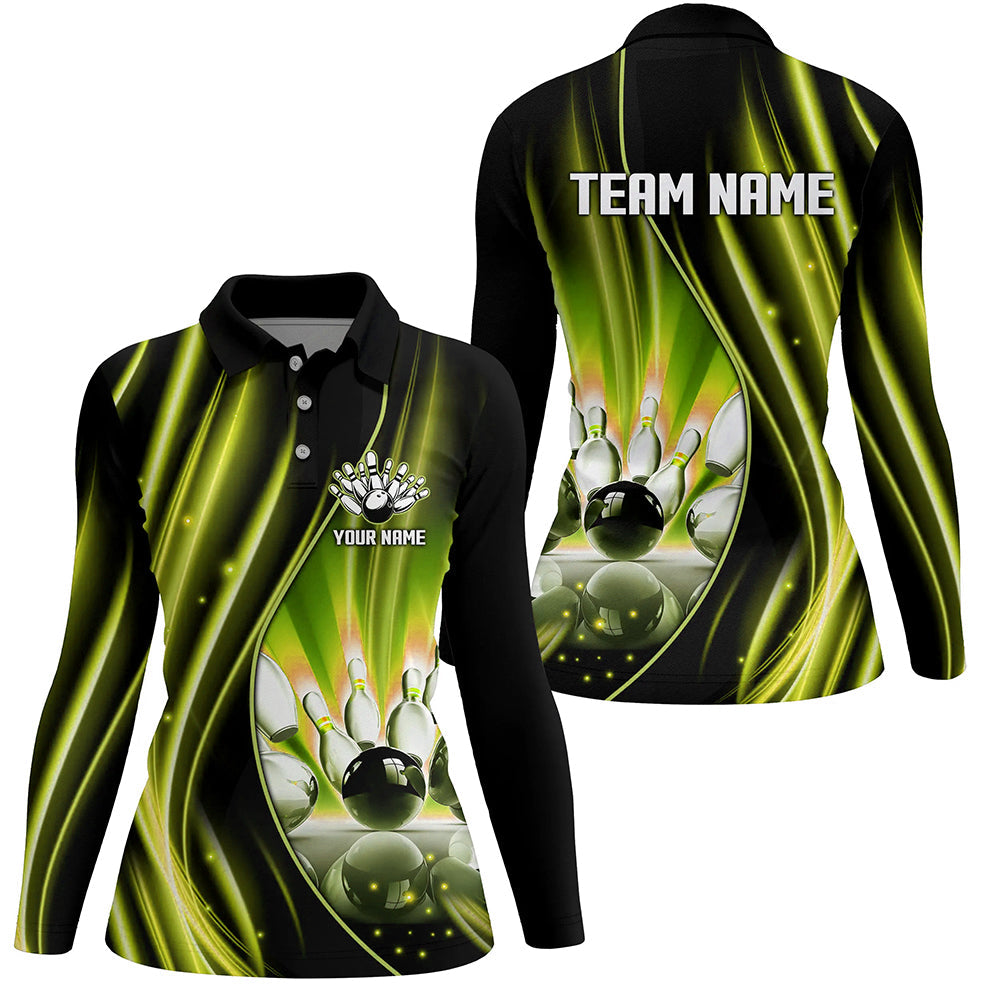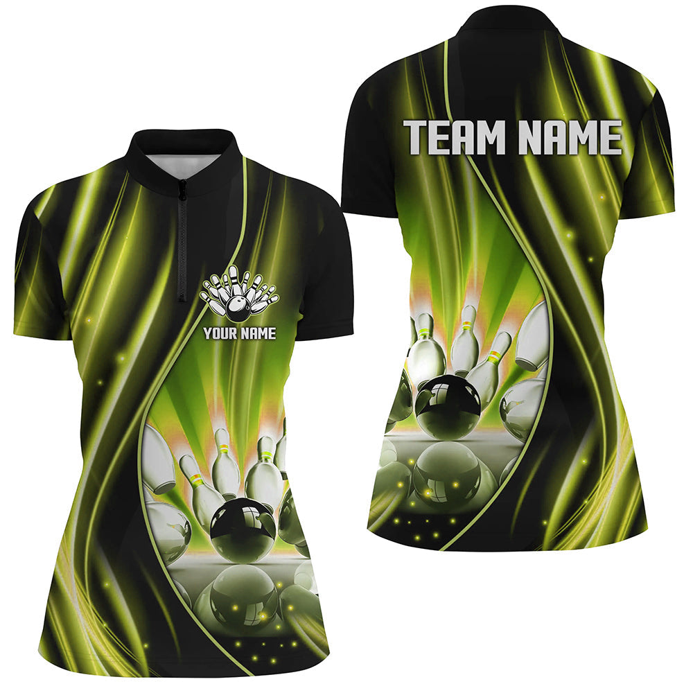 Yellow and black light Women Polo, 1/4 Quarter Zip Shirt Custom bowling team jerseys, gift for bowlers NQS8098