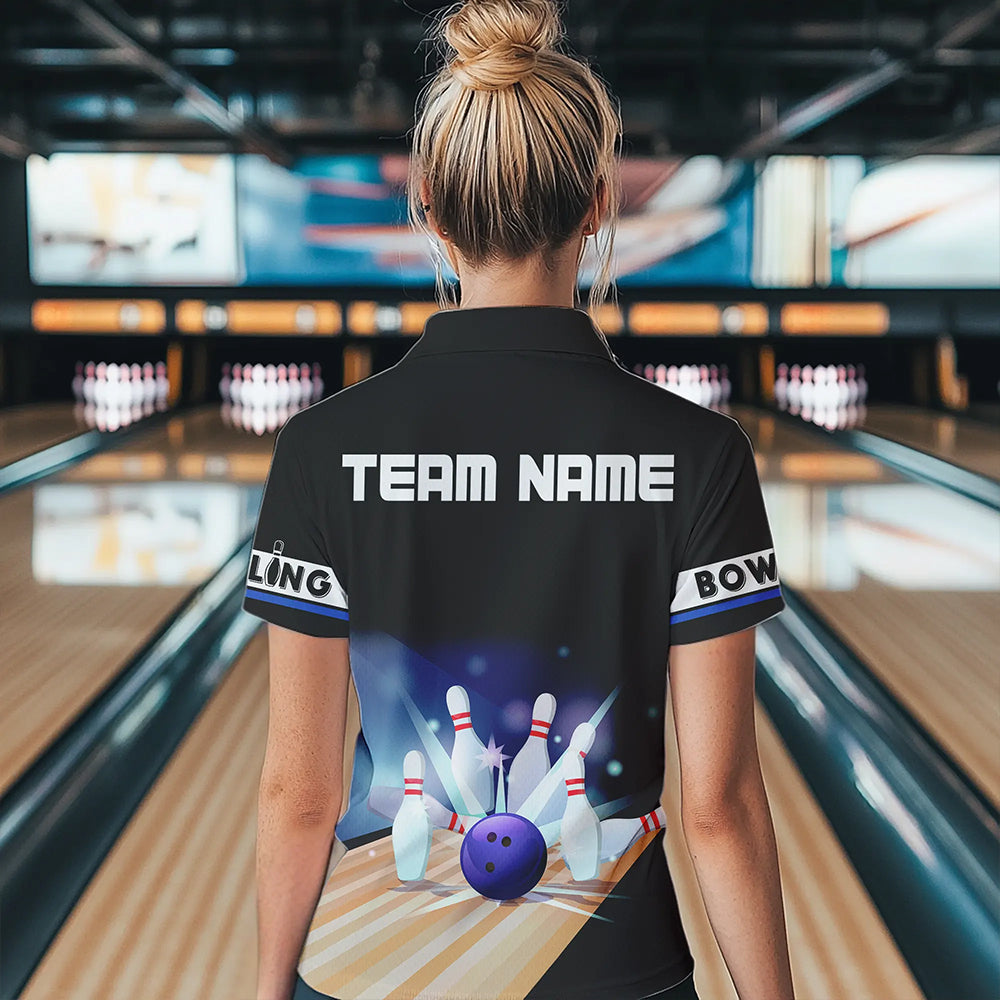 Black and Blue Bowling Polo, Quarter Zip shirts For Women custom bowling team jersey, Gift for Bowlers NQS9415