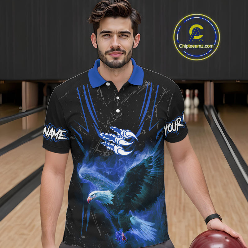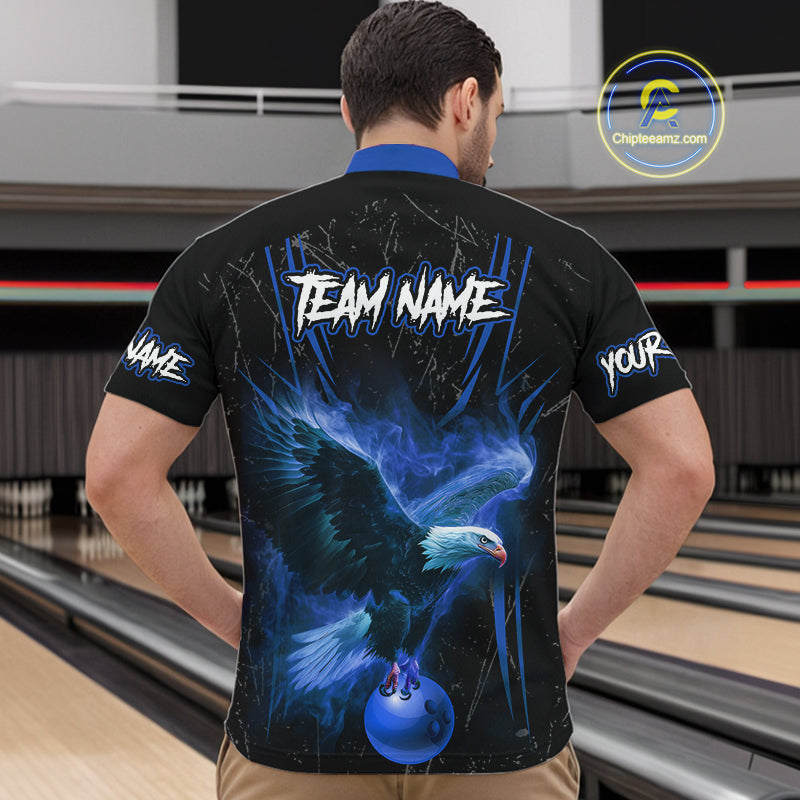 Black and Blue Flame Eagle Bowling Shirt For Men Custom Team Name Bowling Jerseys For Bowlers NQS10673