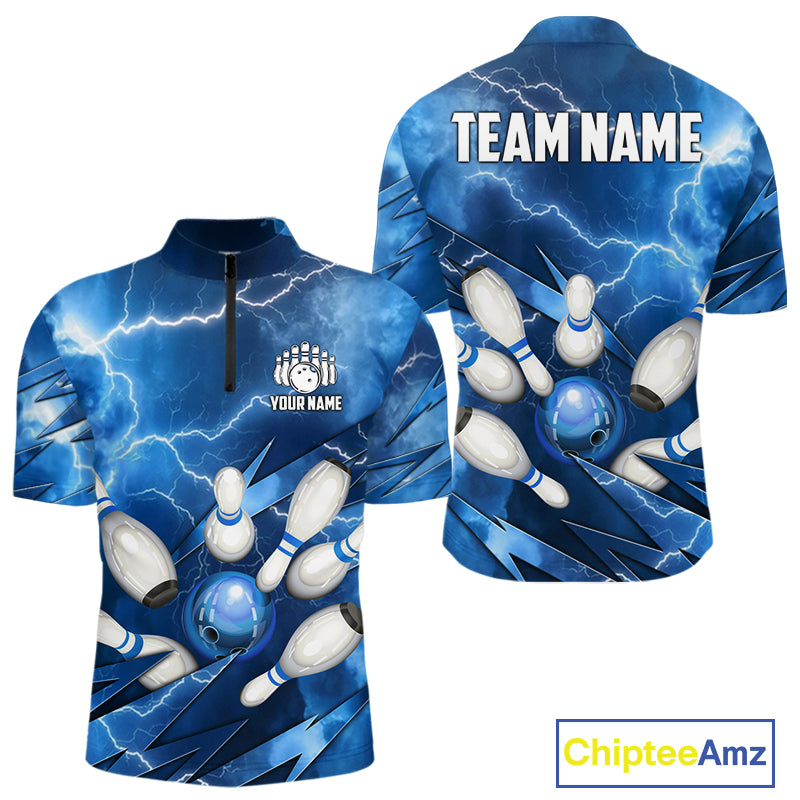 Blue Lightning Thunder Bowling Shirts For Men Custom Bowling Team League Jersey, Gift For Bowlers NQS10860