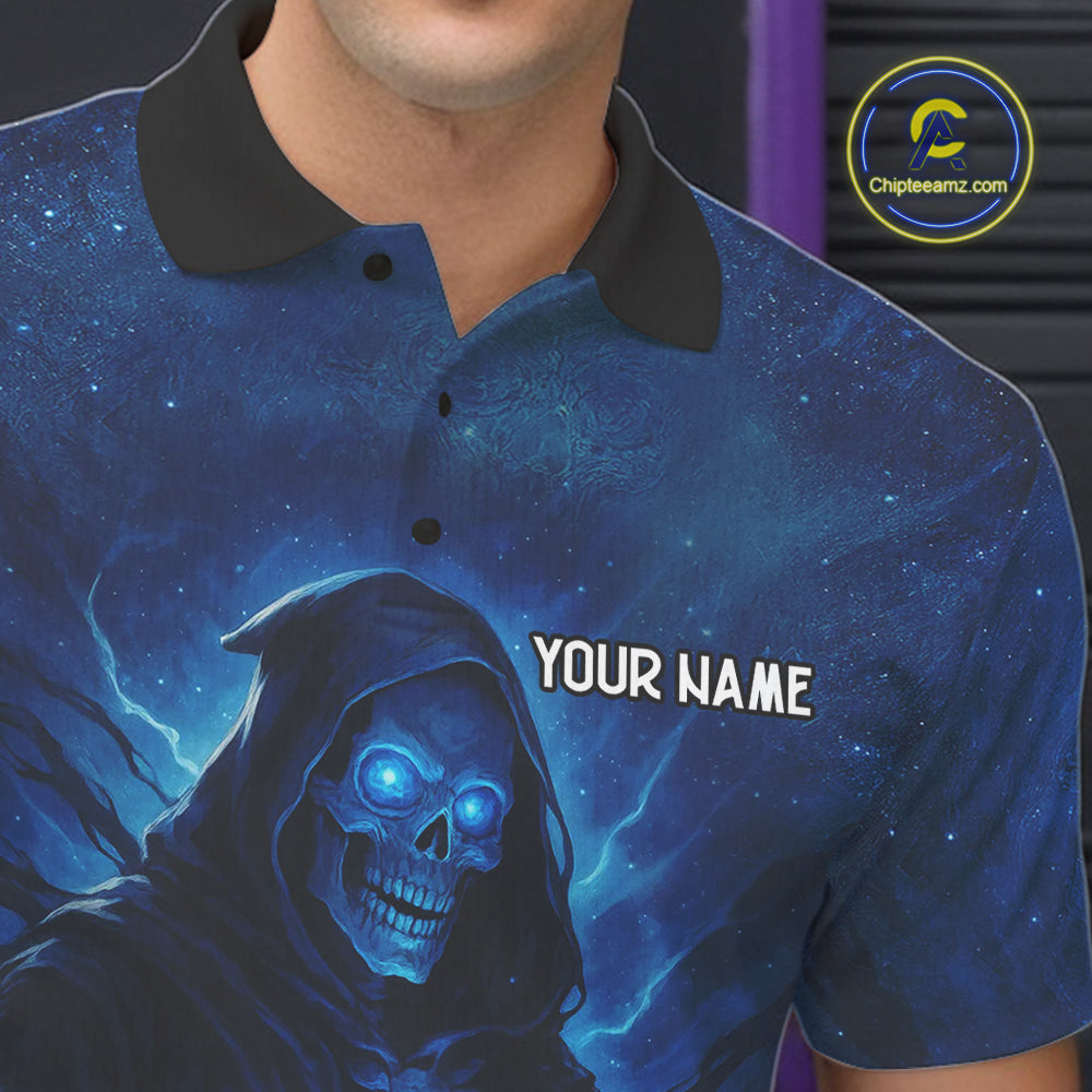 Blue Thunder Lightning Skull Reaper Bowling Shirts For Men Custom Team Bowling Jerseys For Bowlers NQS10679