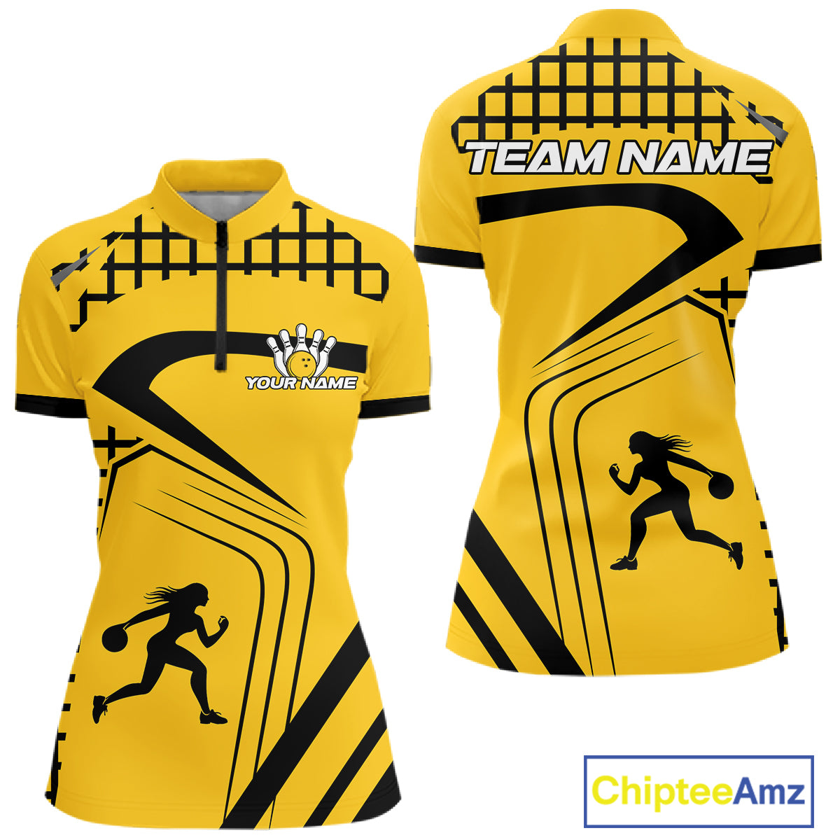 Custom Black and Yellow Bowling Shirts For Women, Personalized Team Bowling Jersey Bowler Outfit NQS10575