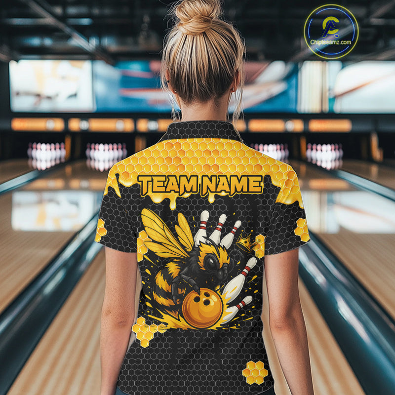 Custom Black and Yellow Honey Bee Bowling Shirts For Women, Bee Bowling Team Bowlers Outfit NQS10376