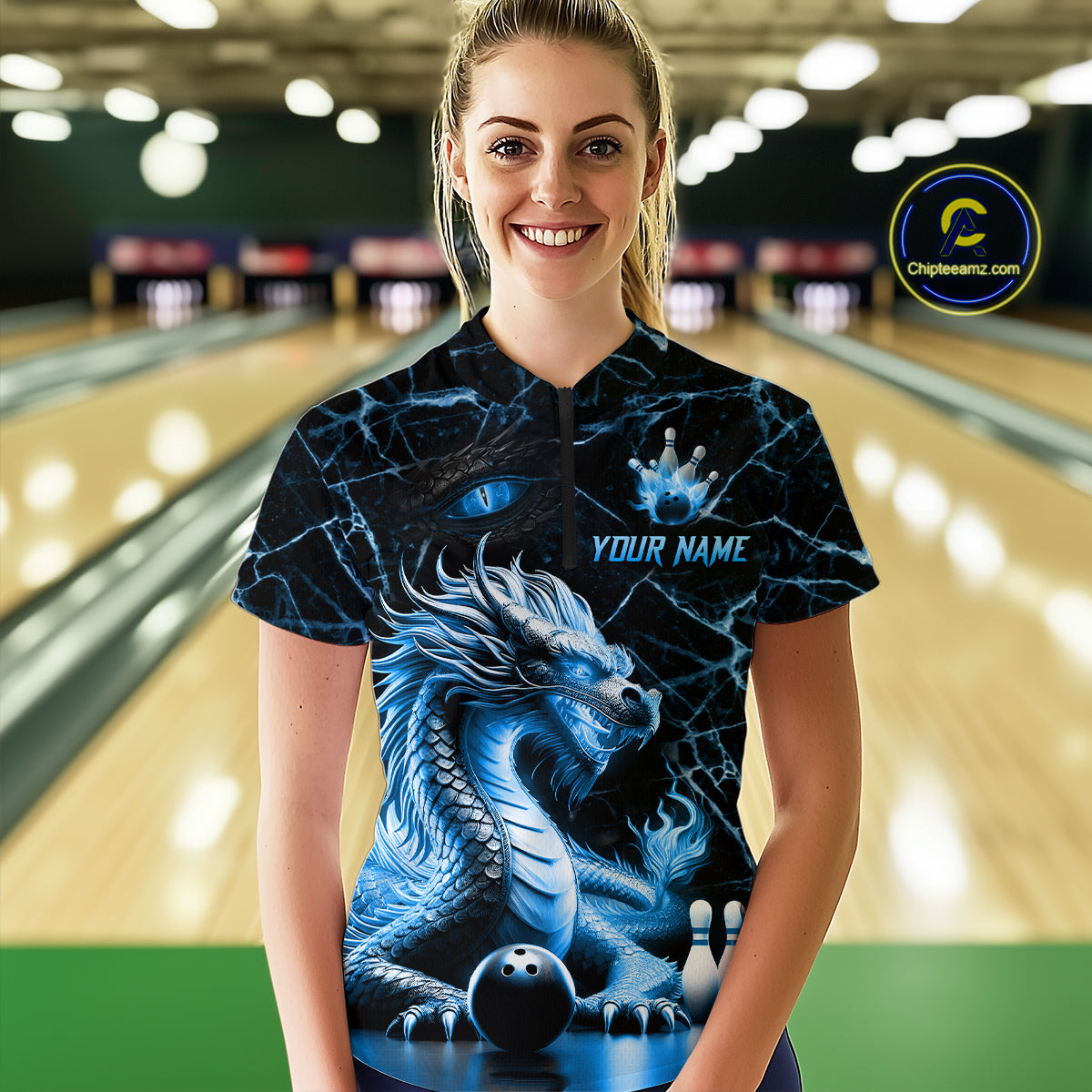 Ice Dragon Bowling Shirt Custom Bowling Team League Quarter-Zip Bowling Jersey Bowlers Gift QZT692