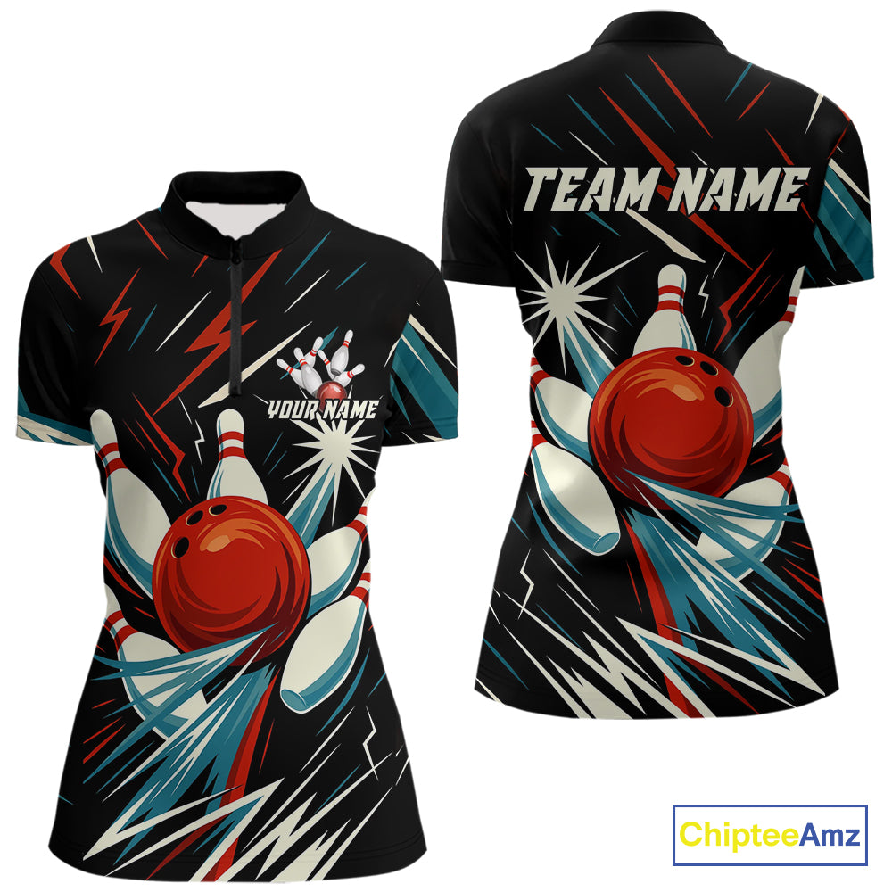 Lightning Thunder Retro Bowling Shirts For Women Custom Bowling Team League Jersey, Gift For Bowlers NQS10867