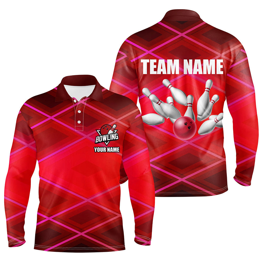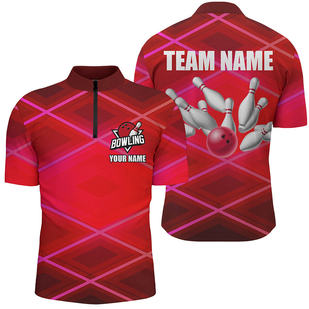 Mens bowling polo, 1/4 zip shirt Custom neon red bowling team league jerseys, gifts for bowlers NQS8714