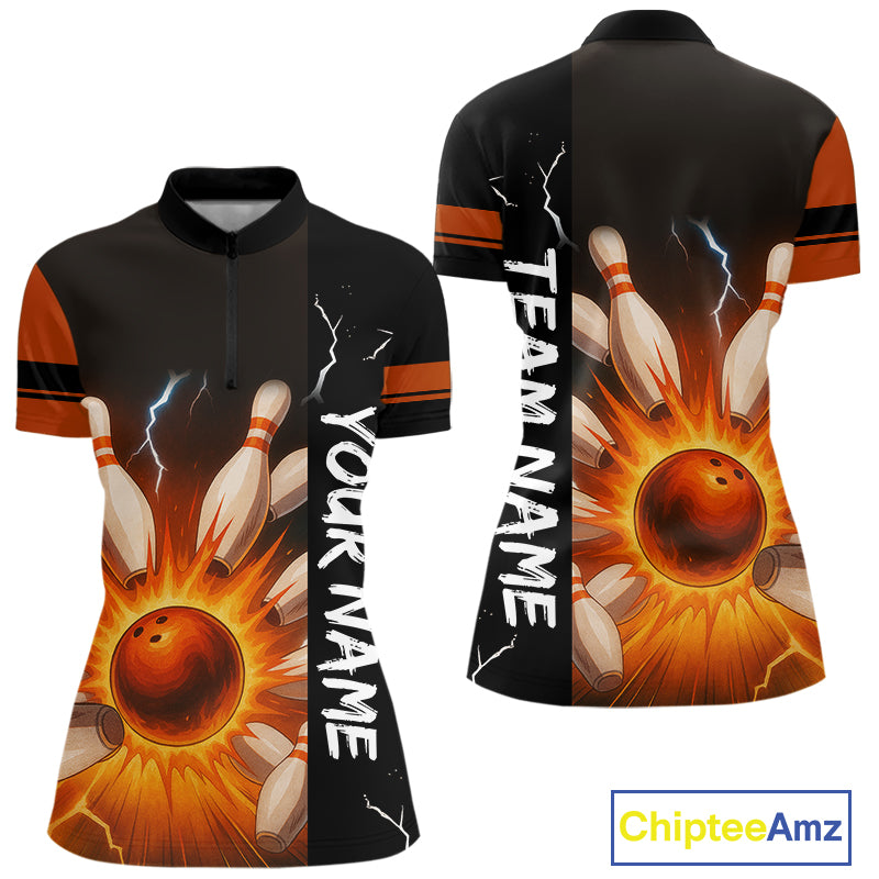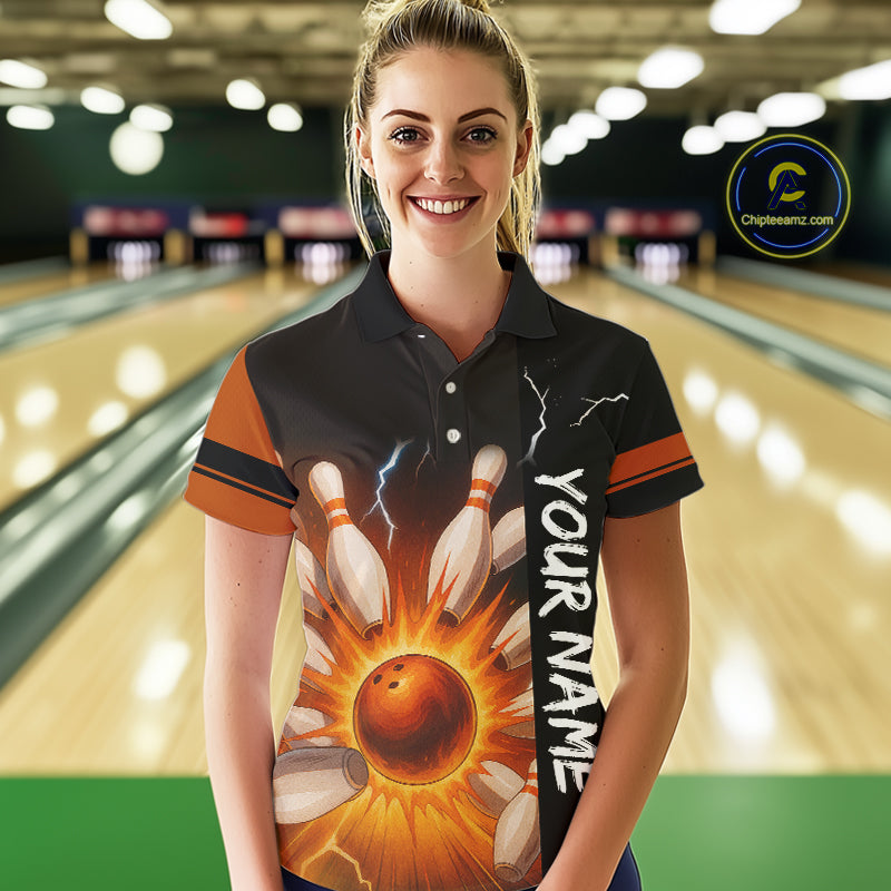 Orange Flame Lightning thunder Bowling shirt For Women custom bowling team jersey Bowler Outfits NQS10329