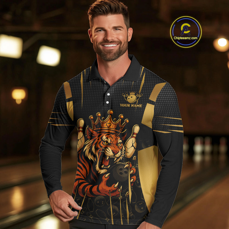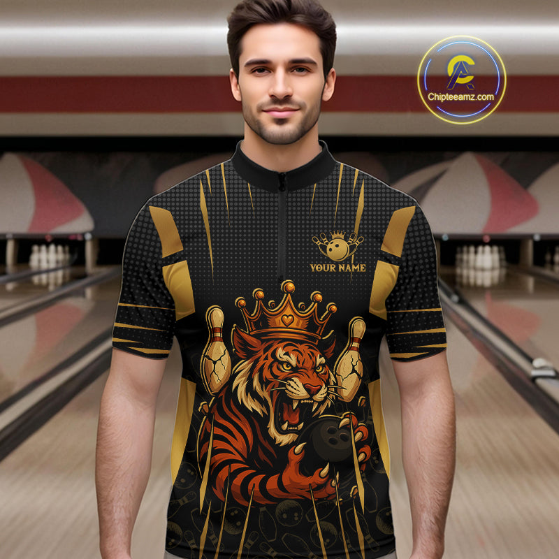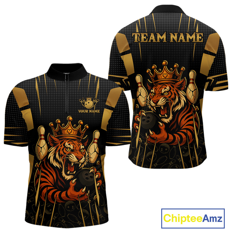 Personalized Black and Gold Tiger Bowling Shirt For Mens Custom Team bowling jerseys, gift for Bowler NQS10474