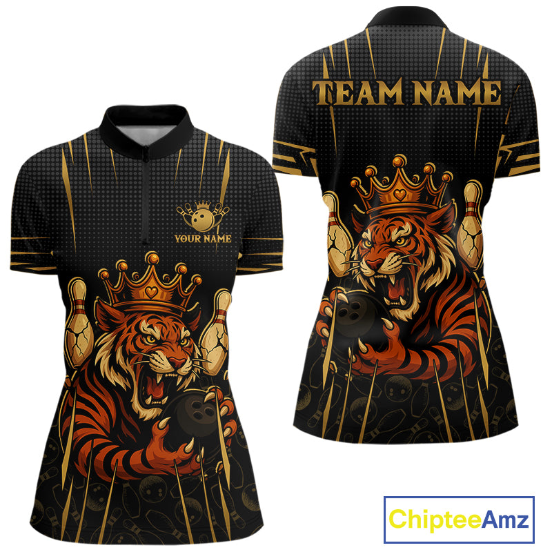 Personalized Black and Gold Tiger Bowling Shirt For Women Custom Team bowling jersey, gift for Bowler NQS10474