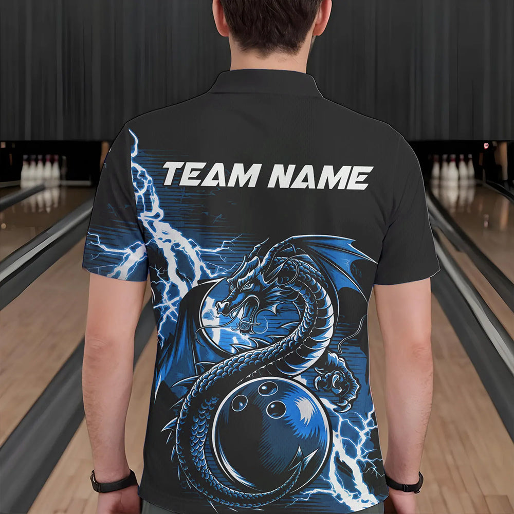 Custom Black And Blue Thunder Lightning Dragon Bowling Polo Shirts For Men, Bowlers Outfits IPHW8663