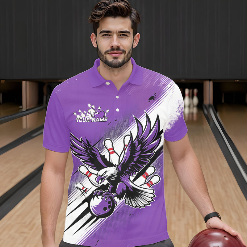 Custom Purple Eagle Bowling Jerseys, Eagle Bowling Men Polo Shirts Team Uniform Bowlers Outfit IPHW8788
