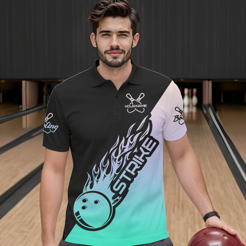 Green And Purple Custom Strike Bowling Polo Shirts For Men, Bowling Team Shirt Bowler Outfit IPHW8824