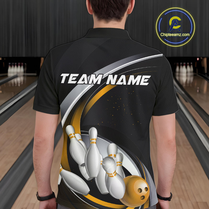 Custom Black Yellow Bowling Team Jerseys, Bowler Uniform Bowling Polo Shirts For Men IPHW9278